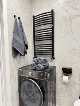 Современная ванная комната : тропический душ, гигиенический душ , стиральная машина , полотенца, гель для душа , шампунь, фен, порошок.