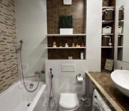 + встроенная кухня с бытовой техникой: холодильник, индукционная плита с духовкой, вытяжка, посудомоечная машина, стиральная машина с сушкой