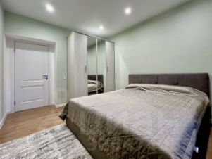 Интерьер спален включает новую мебель: просторную двуспальную кровать, две удобные полуторные кровати, вместительные шкафы, матрасы и спальные принадлежности.