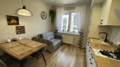Просторная 1 комнатная квартира, со свежим ремонтом, новой мебелью и техникой: общая площадь - 46 кв. м, комната - 21 кв.м, кухня - 13,0 кв.м, санузел - 5, 5 кв.м с окном.
