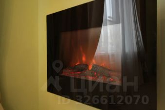 Гостинная изолированная: раскладной двухспальный диван, кресло, ТВ, электрокамин, журнальный столик, кресло, гарнитур.