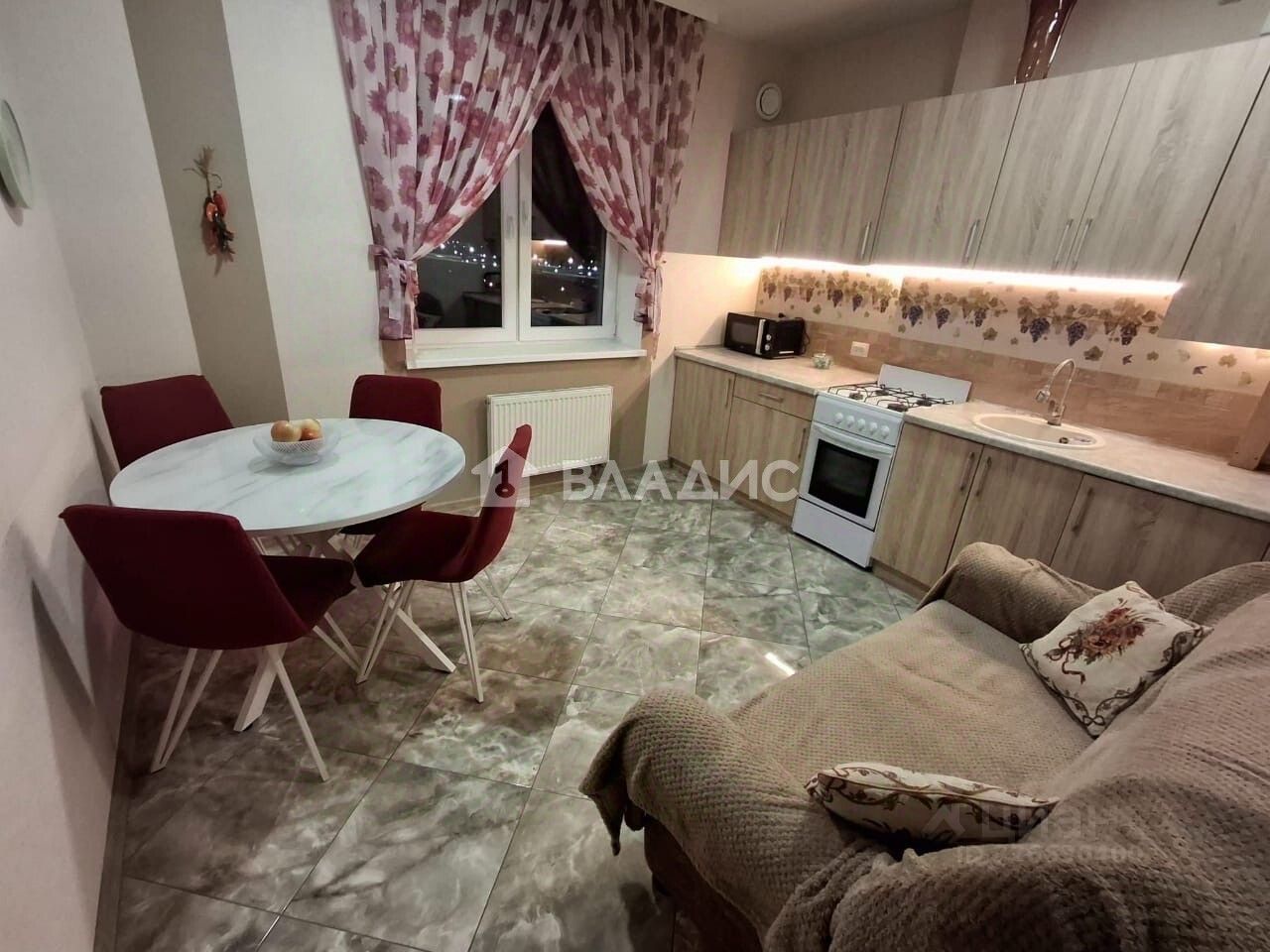 Уютная кухня с кухонным уголком.