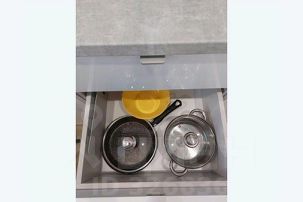 комплект посуды, газовая плита, микроволновая печь, холодильник, чайник