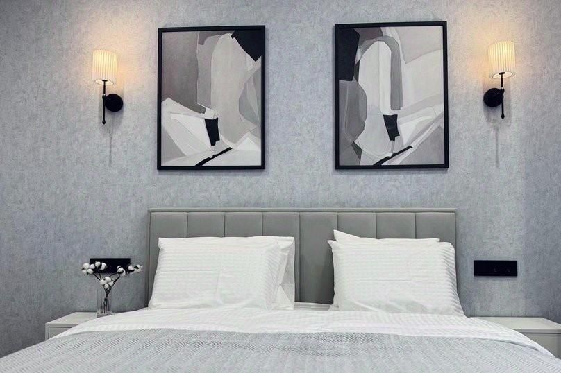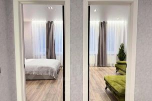 В спальне кровать 160*200 с ортопедическими подушками для комфортного сна. Качественное постельное белье, вместительный шкаф для одежды