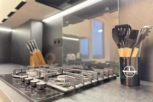 Просторная кухня для всей семьи позволит готовить сказочные блюда дзюля всей семьи , большой раскладной стол для уютных ужинов и воскресных завтраков. Кухня оборудована всем необходимым: чайник, тостер, газовая плита , духовой шкаф , микроволновая печь, посудомоечная машина , холодильник, необходимая утварь и посуда, бокалы , столовые приборы.