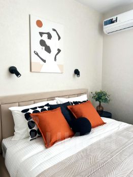 -светлая уютная спальня с большой кроватью и высоким ортопедическим матрасом;