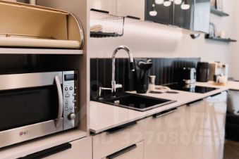 Несмотря на компактность, в квартире есть всё для комфортного проживания пары и возможность размещения третьего гостя. Каждая деталь создает атмосферу заботы: удобная кровать с постельным бельём из шелковистого сатина, полноценная кухня с качественной техникой, ванная комната с особой атмосферой расслабления.