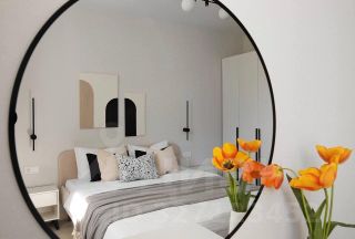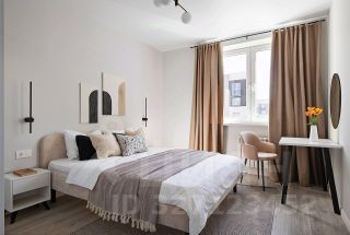 -спальня с двуспальной кроватью, прикроватными тумбочками, вместительным шкафом, зеркалом, письменным столом и креслом;