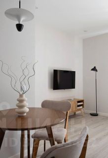 -просторная кухня-гостиная с уютным освещением, раскладным диваном, тумбой и телевизором со smart tv;