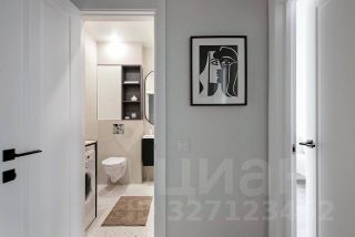 -прихожая со шкафом, пуфом и зеркалом во весь рост, а также просторный санузел с ванной, душем и стиральной машиной;