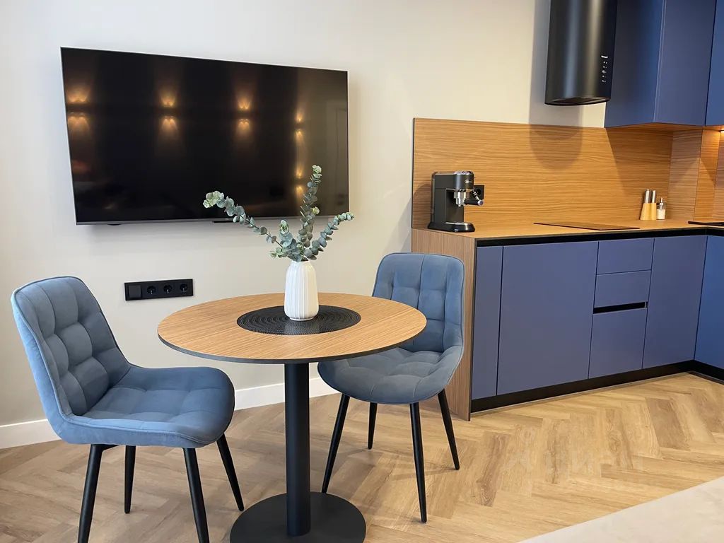 Квартира оборудована всей необходимой бытовой техникой - посудомоечной и стиральной машинами, тостером, микроволновой печью, чайником, рожковой кофемашиной, утюгом, пылесосом, ТВ, а также высокоскоростным WiFi