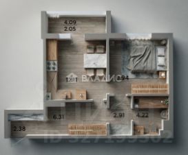 • Общая площадь 43,16 кв.м,