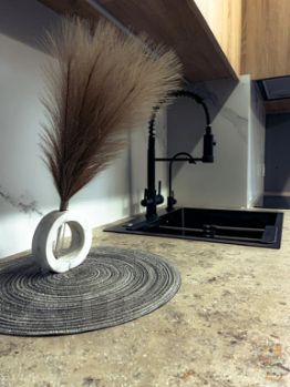 Апартаменты с дизайнерским свежим ремонтом. В них есть все для комфортного проживания гостей. Обстановка располагает к приятному и комфортабельному отдыху. В отдельной спальной комнате двуспальная кровать с ортопедическим матрасом и четырьмя подушками. Предоставляются постельные принадлежности и полотенца отельного качества, есть запасной комплект смены белья если вы проживаете более 3х суток , шторы Блэкаут (особенно актуально в летнее время, когда в 23.00 еще светло),телевизор со смарт тв, шкаф -купе, торшер, бесплатный wifi. К услугам гостей отдельная кухня с отличной встроенной бытовой техникой- с индукционной плитой, духовым шкафом, принадлежностями для готовки, посудомойкой, стильной посудой, стиральной машиной, СВЧ печью, чайником, кофеваркой, скороваркой и холодильником. Санузел (пол с подогревом) с душевой кабиной, гигиенической косметикой, фен, полотенцесушитель, гладильные доска и утюг, пылесос. Есть небольшая лоджия с уютными креслами и столиком где теплым вечером приятно выпить чай. В наличии одноразовые тапочки, коврик для пляжа.