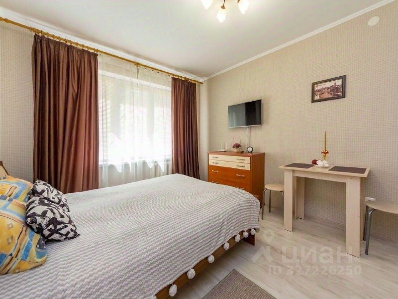 Общая площадь - 25 кв.м, кухонная зона, нет балкона, совмещенный санузел в кафеле с душевой кабиной. Окна квартиры выходят на тихую улицу. В квартиру проведен интернет Тис-Диалог, наличие роутера.