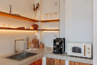 Полностью оборудована кухня: кофемашина , холодильник, плита, чайник, посудомоечная машина, микроволновка, посуда.