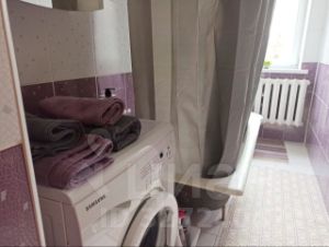 В ванной комнате также есть окно. Стиральная машина Самсунг. Шкафчик с зеркалом. Полотенца.