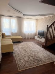 Уютный большой двор, парковка возле дома, соседи все хорошие. Квартира полностью обставлена, приготовлена для заезда. Есть все необходимое. Большая кухня-столовая, просторный светлый зал. На первом этаже санузел с душевой, на второй этаже большой санузел с ванной. Два застекленных балкона, одна лоджия из ванной комнаты на втором этаже. Двери, лестница деревянные.