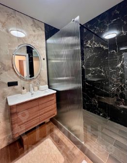 • стильная ванная комната с душевой зоной и качественной сантехникой