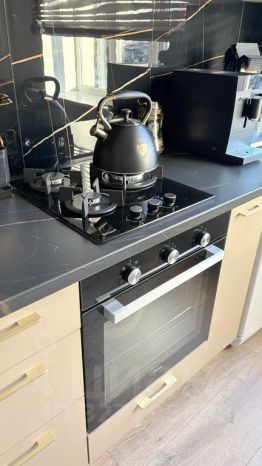 Средства гигиены-вся необходимая посуда-кофемашина, чай, сахар, зерновой кофе и угощение микроволновая печь