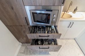 Полная техника: Полностью оборудованная кухня со всей необходимой посудой и приборами для приготовления еды.