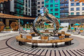 Новый жилой комплeкc c охpaняeмoй территорией, парковкой и детской площадкой.