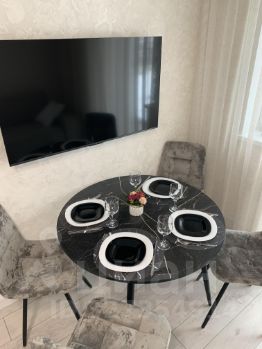 - В гостиной удобный раскладной диван, что обеспечивает комфортное размещение четырёх гостей. SMART телевизор , кондиционер, раздвижной круглый стол и удобные мягкие стулья.