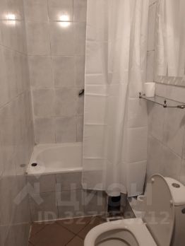 Небольшой санузел оснащен сидячей ванной и унитазом.