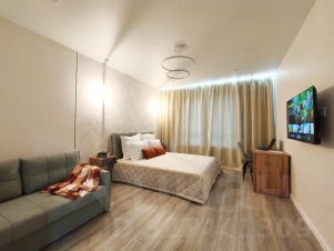 В самой квартире — двуспальная кровать 160200 с ортопедическим матрасом и постельным бельём как в отелях (страйп-сатин, свежие и приятные на ощупь), светлая гостиная с удобным раскладным диваном и мягкими подушками. Также предоставляем тапочки, чистые полотенца и халаты.