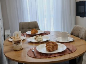 Квартира идеально подойдёт и для пар, которым хочется провести уютный вечер в светлой гостиной, и для командировочных — есть рабочая зона и быстрый Wi-Fi. Семьям с детьми будет удобно: настольные игры и книги, полностью оборудованная кухня для приготовления еды. Любители отдыха на море оценят близость пляжа, а гостям с автомобилем доступна парковка рядом.