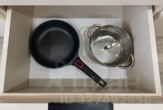 Полностью оборудованная кухня: индукционная плита, холодильник, микроволновка, чайник, тостер, кофемашина, посуда и столовые приборы — готовьте любимые блюда легко и с удовольствием.