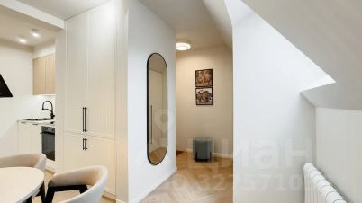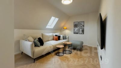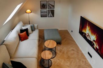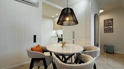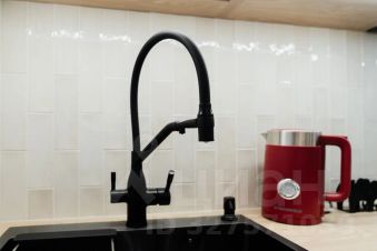 Просторное и очень светлое пространство. Кухня полностью укомплектована: есть рожковая кофеварка для ароматного эспрессо по утрам и всё необходимое для приготовления ужина. В зоне гостиной — огромный уютный (и очень фотогеничный!) диван и Smart TV.