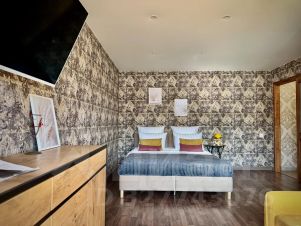 Спальные места: удобная двуспальная кровать и раскладной диван. Комфортно разместим до 4-х человек.