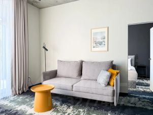 Просторные современные апартаменты с отдельной спальней в стиле лофт. Интерьер выполнен в спокойных природных оттенках — много света, воздуха и удобное зонирование пространства. Комфортно для пары, семьи или компании до 4 человек.