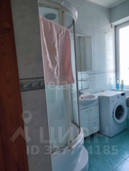 Санузел оснащён душевой кабиной и стиральной машиной.