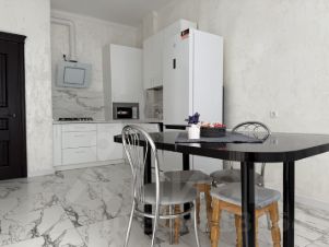 Сдается уютная квартира в современном доме, построенном в 2020 году. Квартира расположена на 3-м этаже 9-этажного монолитного здания. Общая площадь составляет 55 кв. м, из которых 22 кв. м — это жилая зона, а кухня занимает просторные 18 кв. м. Высокие потолки в 3 метра добавляют ощущение простора и света. Окна выходят во двор, поэтому в квартире тихо и спокойно.