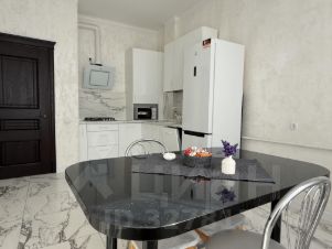 В квартире сделан качественный евроремонт. В комнате и на кухне установлена современная мебель. К вашим услугам вся необходимая техника: холодильник, посудомоечная машина, стиральная машина и телевизор. Санузел совмещенный, с ванной, что позволяет комфортно проводить время.