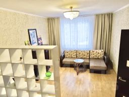 В квартире есть два спальных места ( кровать , диван) и другая мебель для комфортного проживания (комод, встроенный шкаф, стол, стулья, стеллаж). Кухня оснащена необходимой бытовой техникой, включая холодильник и плиту.