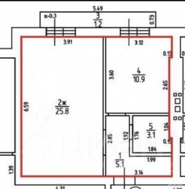 В комнате расположена просторная двуспальная кровать, диван ( раскладывается), большой шкаф для хранения одежды, из комнаты выход на балкон с видом во двор.