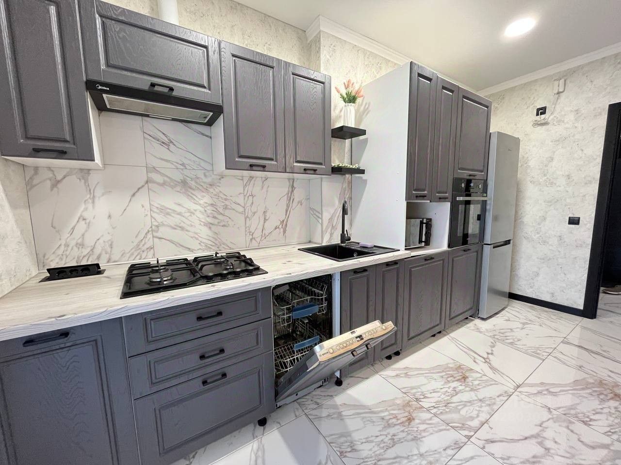 - кухня оснащена современной техникой, включая холодильник, плиту, духовой шкаф, посудомоечную машину и микроволновку.