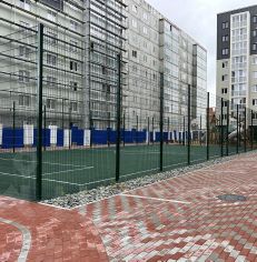 В комплексе большая спортивная зона, детские площадки, с безопасным резиновым покрытием.