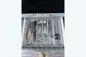 • Кухня: Вся необходимая техника (холодильник, плита, микроволновка, чайник, посудомоечная машина), полноценный набор посуды и столовых приборов.