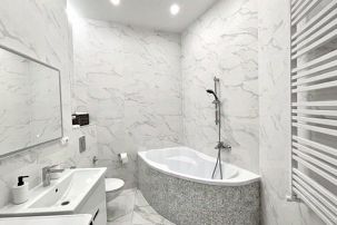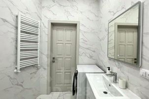 - Ванная комната - дизайнерская ванная с санузлом, раковина, туалетные принадлежности. Каждому гостю предоставляется набор полотенец.