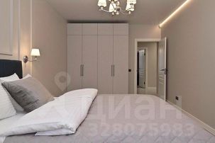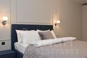 - в первой спальной зоне большая современная кровать, телевизор, просторный гарнитур;
