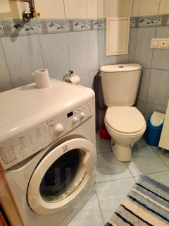 Санузел совмещенный, оснащен современной сантехникой и стиральной машиной.