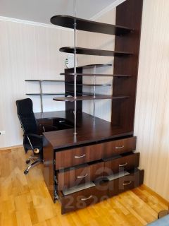 Есть рабочая зона с вместительным шкафом.