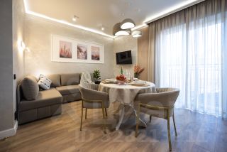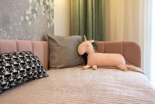 В детской размещен диван 90/180, с возможностью размещения нижней полки с матрасом (итого 2 детей до 12 лет). В кухне-гостиной размещен удобный диван (раскладной, 160/200).
