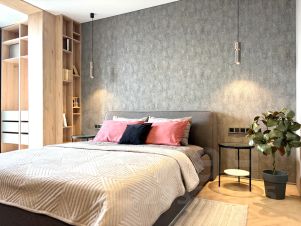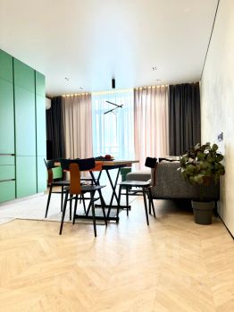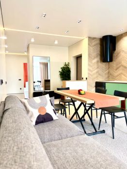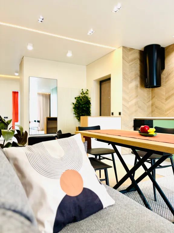 Дизайнерская квартира с тремя спальнями, кабинетом и просторной кухней-гостиной в историческом районе Калининграда. В каждой комнате панорамные окна с прекрасными видами на город с одной стороны и лес с другой.