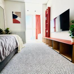 Район с развитой инфраструктурой — аптеки, супермаркеты, остановки общественного транспорта, несколько кофеен, пекарни. Для комфортного проживания в квартире есть всё необходимое, максимально удобные спальные места — 2 двуспальные кровати 160х200 см, 1 односпальная кровать 90х200 см с ортопедическими матрасами, с качественным постельным бельём. В каждой спальне размещены большие телевизоры Smart TV.