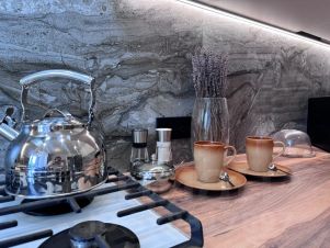 Квартира укомплектована всем необходимым для комфортного проживания. Широкий двуспальный диван, очень удобный для сна, а также комфортное раскладное кресло.