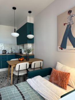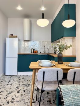На кухне есть все необходимое: холодильник, индукционная плита, микроволновая печь, чайник, столовые и кухонные приборы. Продуманы такие мелочи как: соль, сахар, растительное масло, чай, мыло. Так же не нужно покупать питьевую воду, стоит фильтр для воды